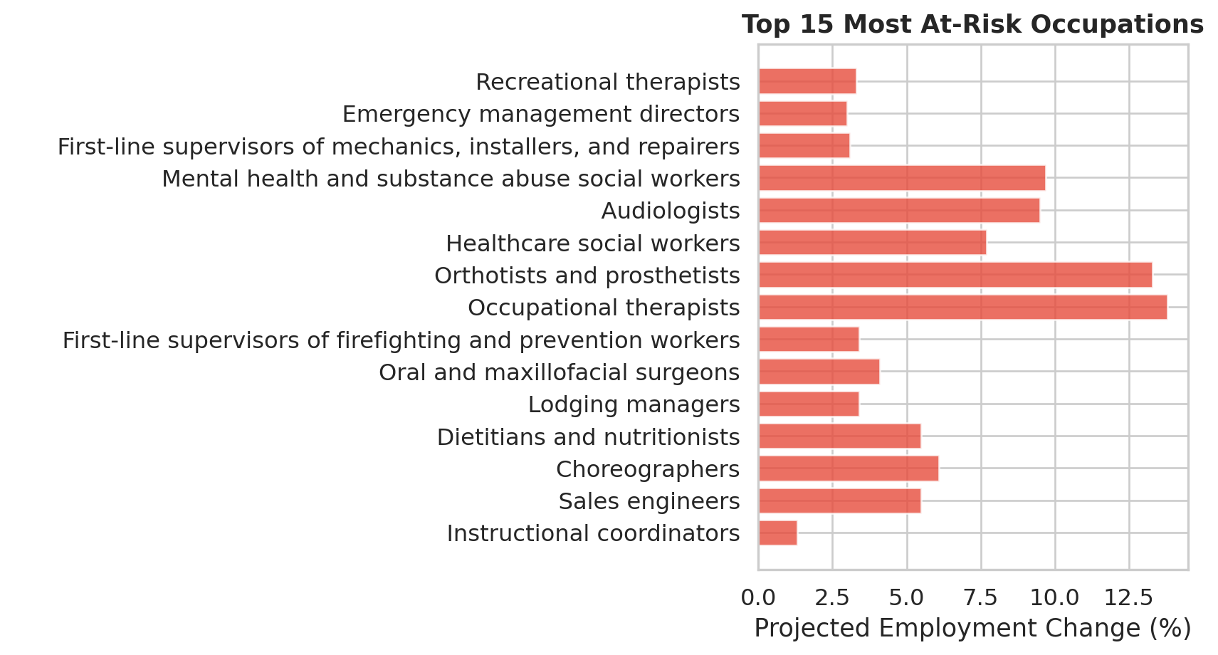 Why this comparison matters: If the risk landscape has shifted, then policies and career advice built on 2013 assumptions may be protecting the wrong people and exposing the wrong sectors.